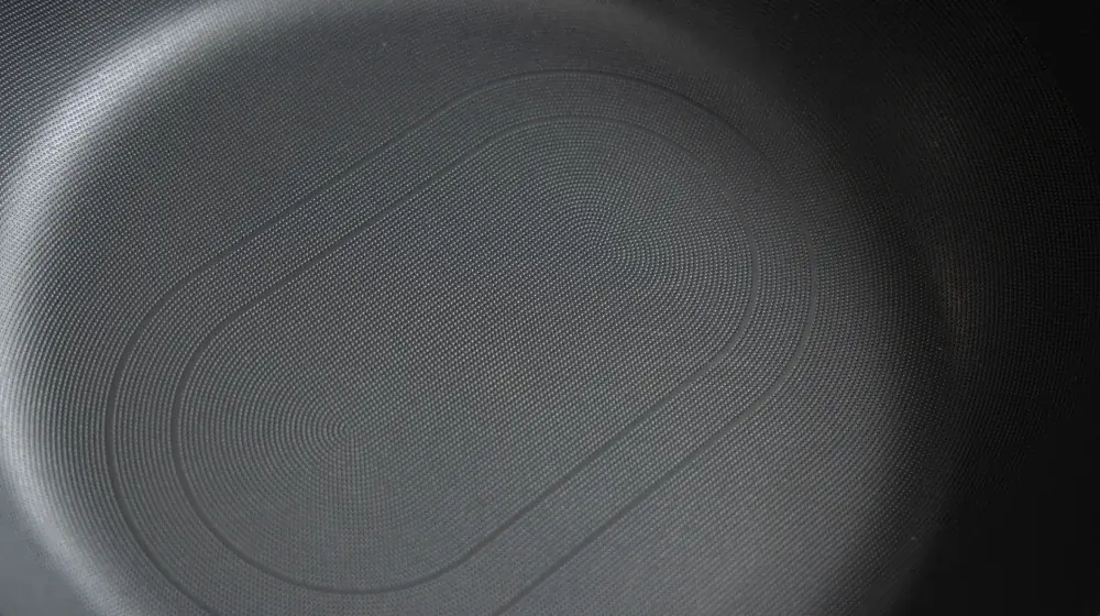 表面には精密加工技術であるエッチング加工を施しています。半導体製造や精密機器で用いられる技術を応用し、フライパン表面に高精度で耐久性のある凹凸を形成しました。