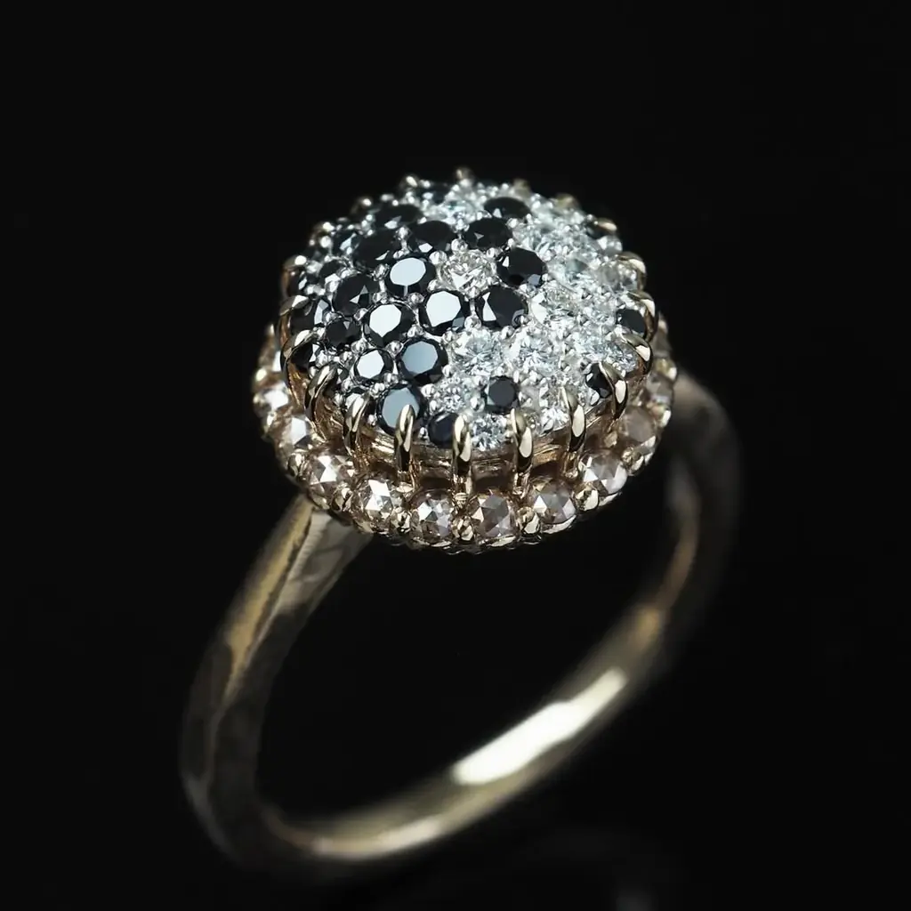 - ローズカットダイヤモンドを取り巻きに用いたPOP UP限定リング。K10YG・ダイヤモンド。価格は会場での案内。