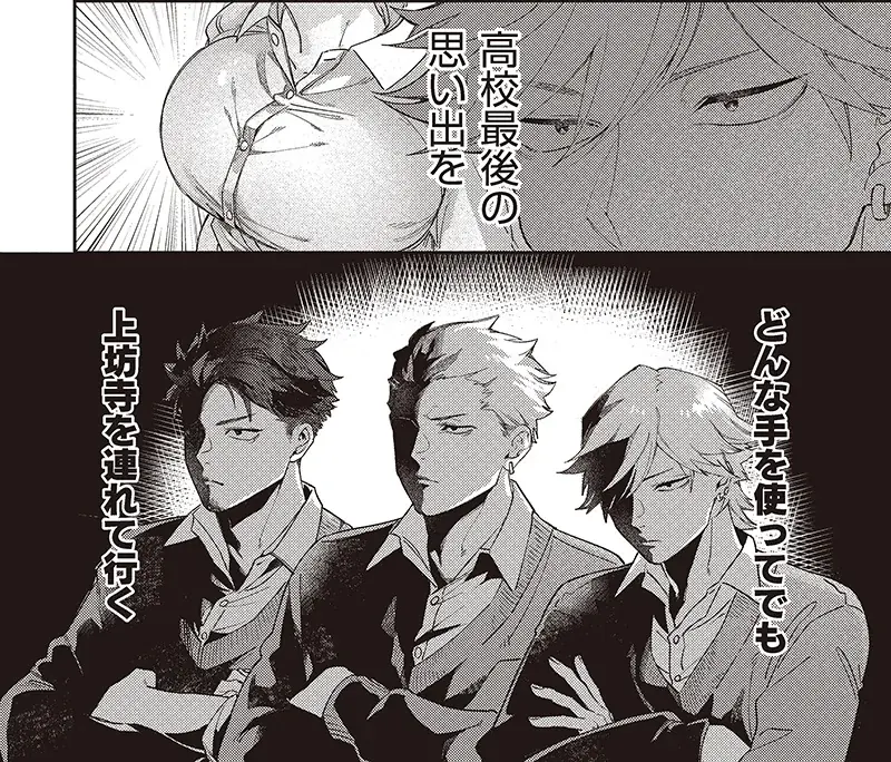 イラつきをぶつけるために小波が上坊寺にタイマンを申し込むと、逃げる途中で校内の見回りの警備員から逃げ込み、体育倉庫に閉じ込められてしまう。二人きりの密室で、これまでまともに話したこともなかった関係に変化が生じる点が物語の中心となる。