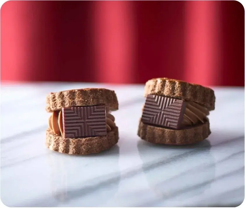 商品例:an and an×meiji THE Cacao『であい』(1個)各531円。ラウンジ発のスコーン職人が手掛ける「あんバタースコーンサンド」と、明治のチョコレートとのコラボレーション商品。和歌山の素材を生かした味わいとチョコのバランスが特徴です。