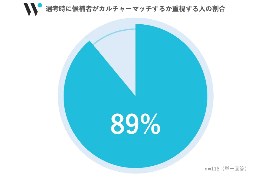 | 採用担当者の重視度 | 89% | 選考時にカルチャーマッチを重視すると回答 |