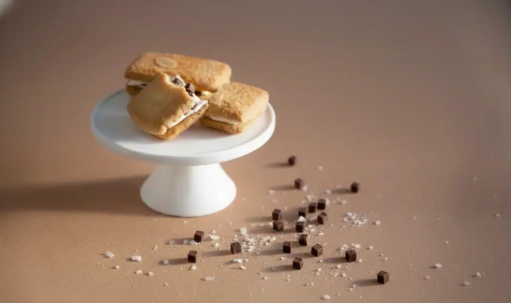 セゾンウィッチは季節(セゾン)ごとにサンドする素材を変え、多様な味わいで季節感を表現するシリーズです。本商品は冬の素材としてチョコレート×塩バタークリームを組み合わせ、ハイカカオの力強い風味と塩味の余韻が同時に感じられる設計になっています。