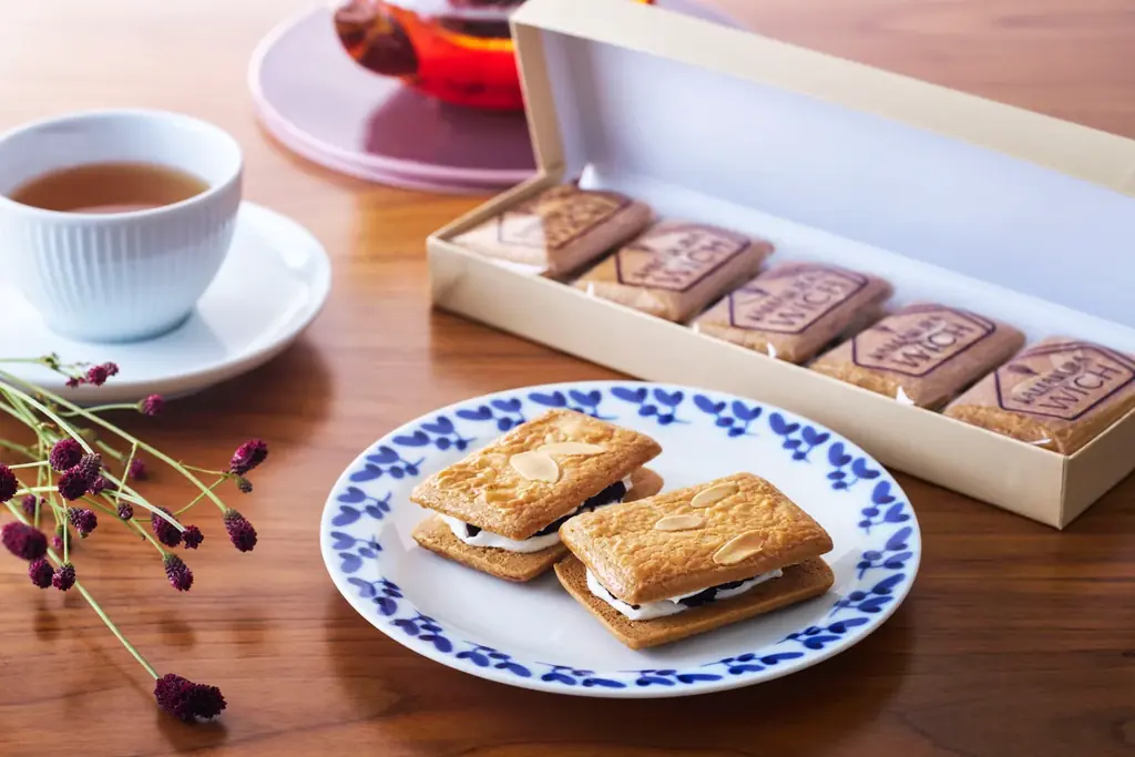 カカオウィッチ:アーモンドの香ばしさが効いたココアビスケットにフランボワーズクリームをサンド。甘さと酸味のバランスがとれた軽やかな食感が特徴です。