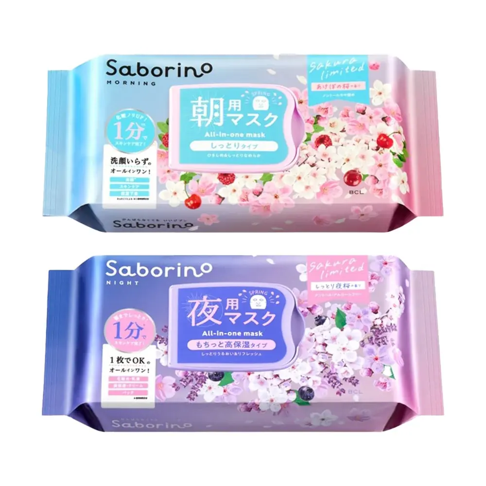 - Saborino 目ざまシート N サクラの香り / お疲れさマスク ヨザクラの香り:各1,540円。朝用の「目ざまシート」は洗顔(ふきとり)から下地までを完了させるワンステップケア、夜用の「お疲れさマスク」は1枚で化粧水からパックまでを完了するオールインワンマスク。朝は清々しい「サクラ」、夜は落ち着いた「ヨザクラ」の香りで使い分けが可能。