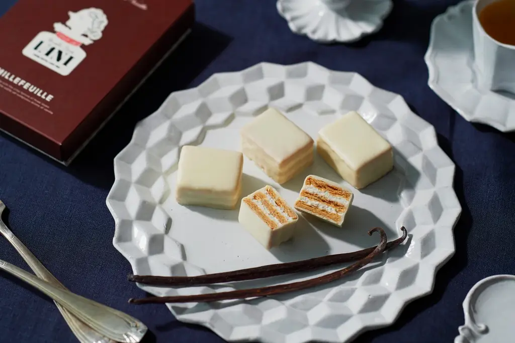 - 説明:パイを3枚重ね、バニラを使用した軽やかなクリームを挟んだミルフィユ。芳醇な甘い香りが特徴。