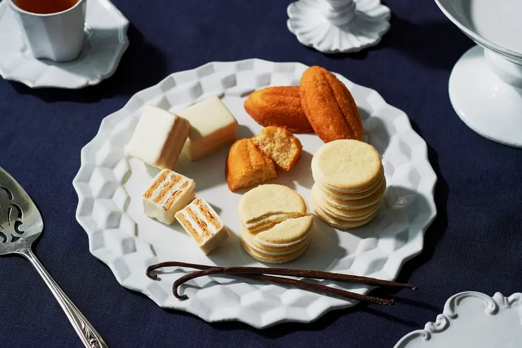 - 説明:人気定番商品のサンドクッキー、ミルフィユ、ケーキを詰め合わせたアソートギフト。バニラの香りを楽しめる詰め合わせ。