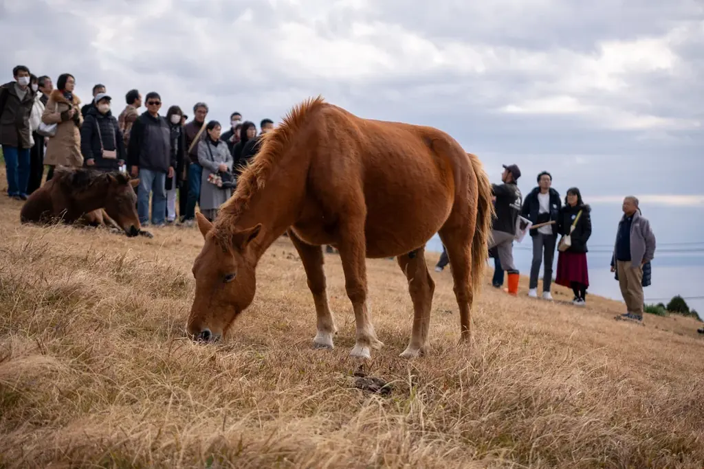 列車到着後は榎原神社での初詣を行い、日南海岸南郷プリンスホテルにてこの日限定の特別ランチ(メインに宮崎牛のローストビーフ)を提供しました。後半は日向灘を一望できる都井岬(串間市)を訪れ、国の天然記念物である御崎馬(みさきうま)を観察する行程が組まれていました。