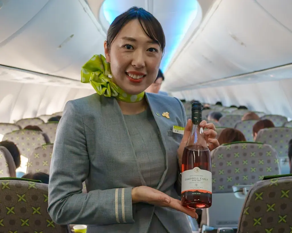 また、機内で提供された食事も企画の重要な一部です。九州・沖縄の食材にこだわったおせち8点を用意し、さらにソムリエ資格を持つ客室乗務員が厳選した宮崎県産ワイン(都農ワイン「キャンベルアーリー・ドライ」ロゼ)を提供しました。機内ではオリジナルグッズが当たるくじ引きも行われ、特別感のある時間が演出されました。