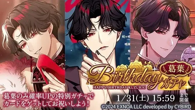 同時に、葛葉の誕生日を記念した「葛葉Birthday記念ガチャ」も開催されています。こちらは2026年1月1日(木)14:00から2026年1月31日(土)15:59までで、過去に登場した葛葉のカードの出現率がアップする仕組みです。