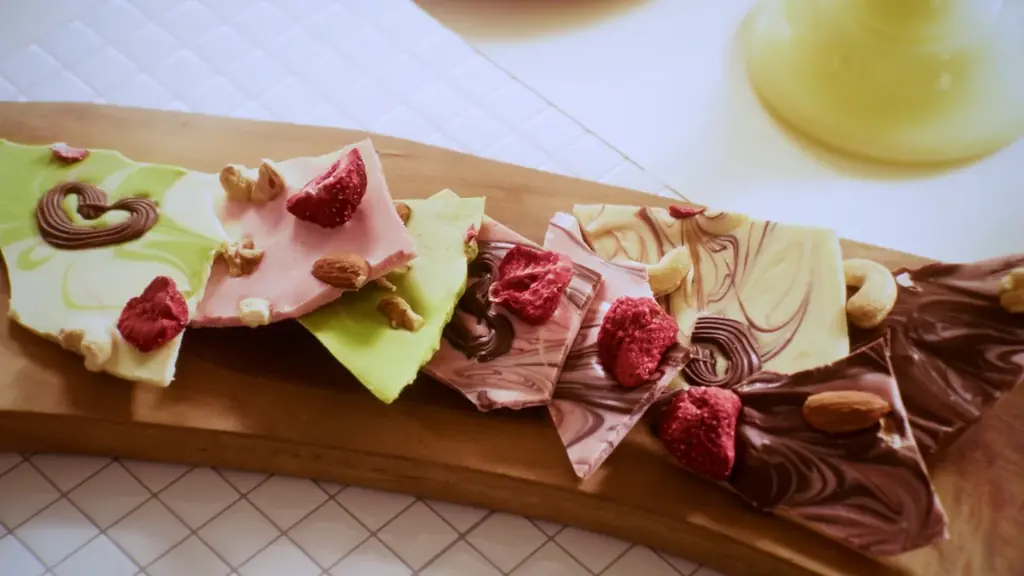 阿部さんは番組参加時からの思いを込めて「メガンちゃんの笑顔が好き。だから笑顔にさせたい。大好き」と語り、4色のガーナを溶かしてマーブル状にした「ガーナチョコバーク」を作りました。ナッツやドライフルーツをデコレーションする工夫も加えられています。