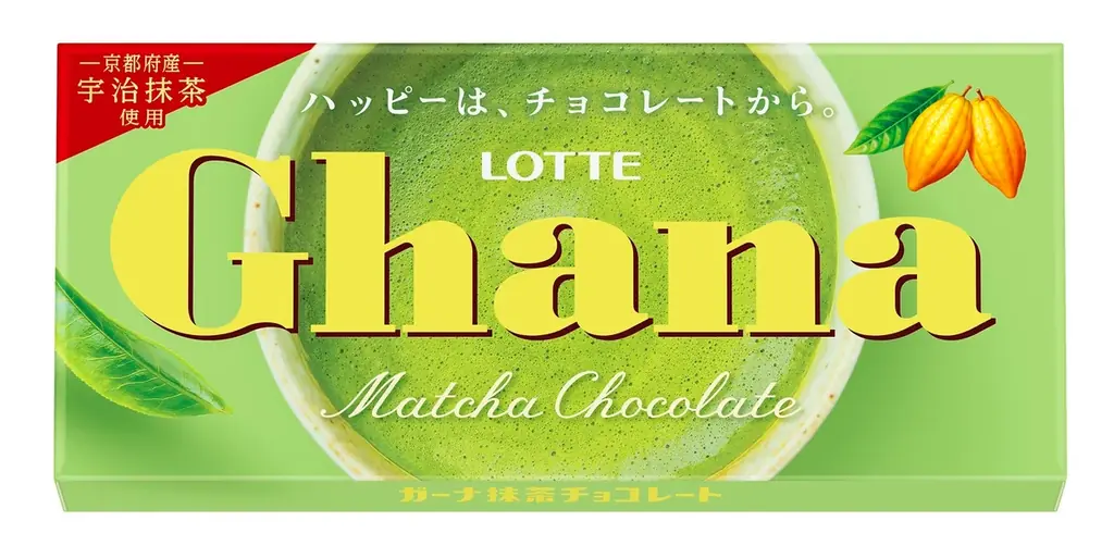 | ガーナ抹茶チョコレート | 京都府産宇治抹茶とガーナホワイトの組み合わせ。抹茶の風味を楽しめる。 | 全国 | 45g | 約248円 | 季節商品/地域:全国 |