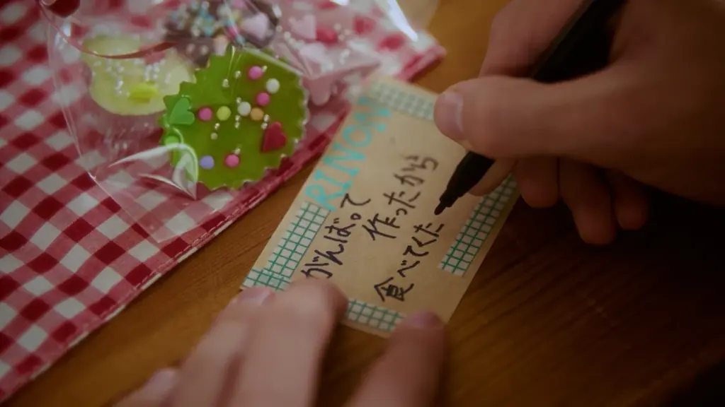 観覧車のライトが点灯する場面での待ち合わせシーンが収められ、内田さんは多田さんに対して「言葉遣いが優しい。一つ一つの言葉に気持ちがこもっていて、一緒にいて気が合う」と語っています。内田さんが渡したのは4色のカラフルな板チョコとトッピングを活かした「KAWAIIチョコ」。