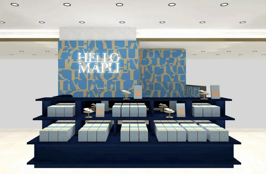 概要:メープルスウィーツブランド〈ハロー メイプリ〉は、今回全国初の常設店舗が名古屋に誕生します。特徴は青いギフトボックスと黄金色のクッキーで、口に含むと優しい甘さとメープルの余韻が広がる商品構成です。