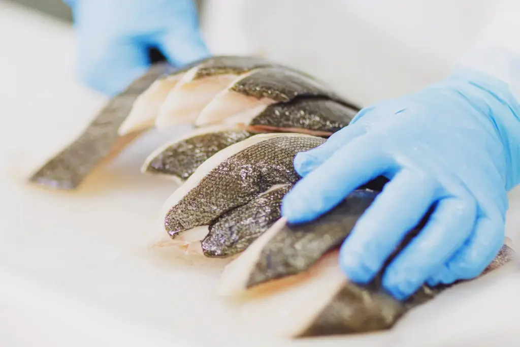 魚は一尾ごとに状態を見極め、切り身の厚みや形を職人が手作業で調整して切り分けます。盛り付けの美しさまで見据えた手切りの技術は長年の経験に支えられており、見た目と食感の両面に配慮されています。