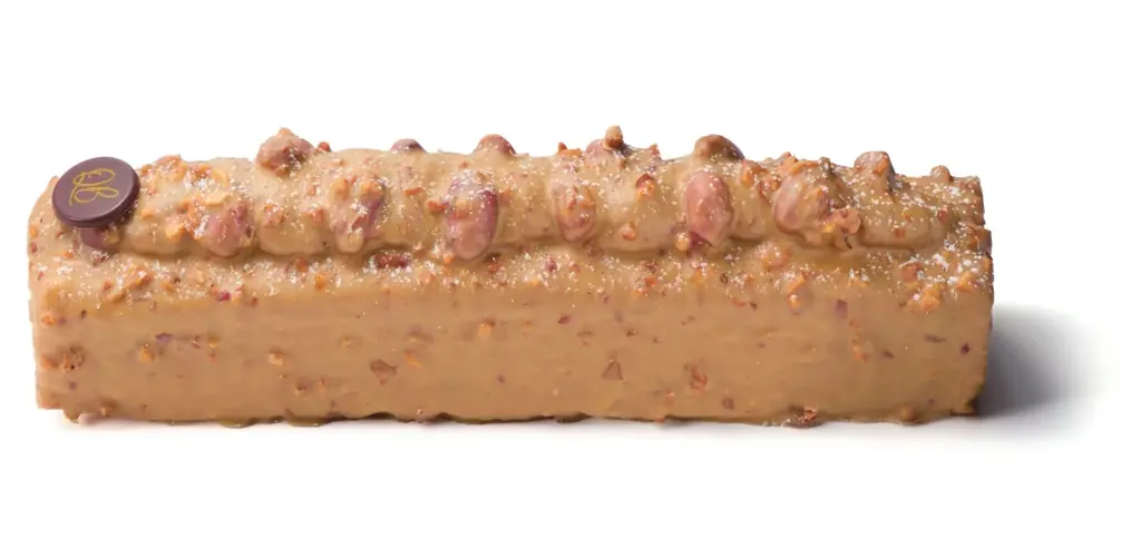 - ピーナッツ風味の生地にピーナッツのプラリネをのせ、キャラメリゼしたクラッシュピーナッツとブロンドでコーティングした一品。価格:1本 5,832円。