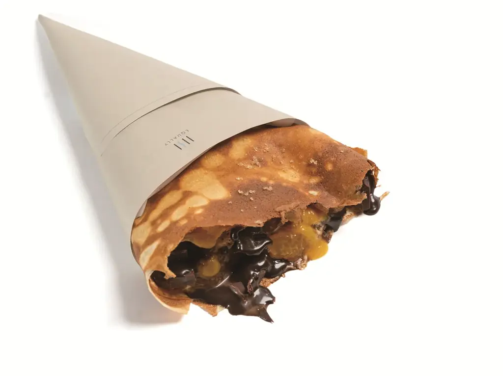 - フランス製発酵バターとたっぷりのチョコレートをまぶしたホットクレープ。4種の限定フレーバーのトッピングから選べ、チョコレートもフレーバーに合わせてセレクト。価格:1個 各2,200円【東京限定】。