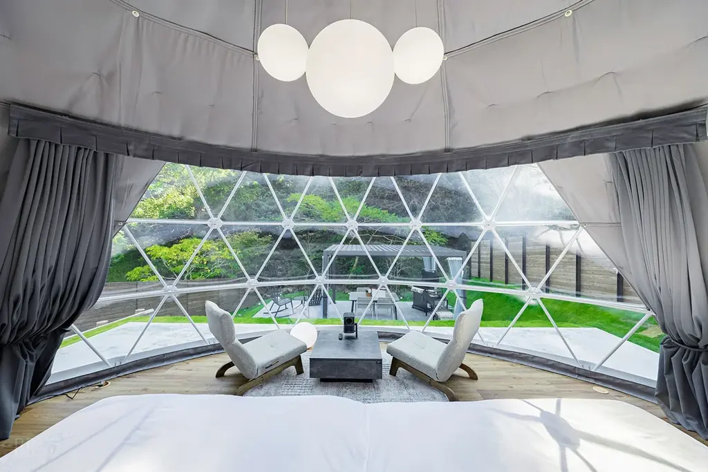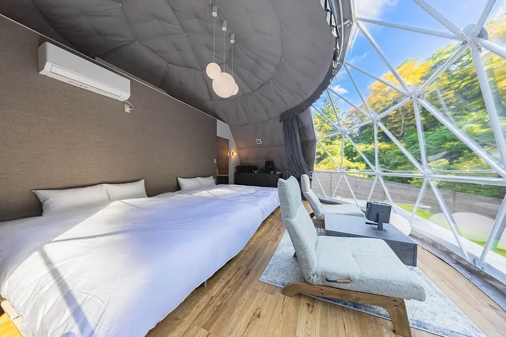 「翠遊 -Suīyu-」は愛犬同伴可能な客室で、1日1組限定の提供です。区画面積は約90坪のアウトドアスペースを有し、周囲を気にせず伸び伸びと過ごせます。