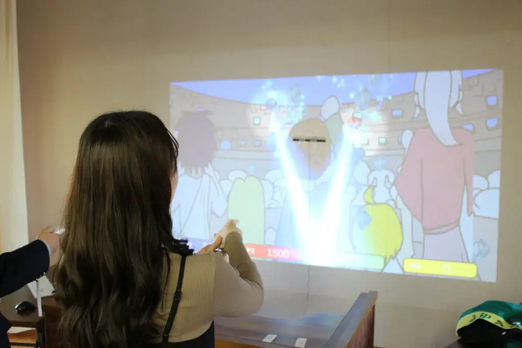 制作チームは約80名の部員によって構成され、個々が役割を分担して完成させました。プログラミング担当はゲームの挙動やスコア管理を実装し、映像制作担当はスクリーンに映し出すグラフィックや演出を作成、デザイン担当はUIや操作説明、筐体デザインなどを整えました。