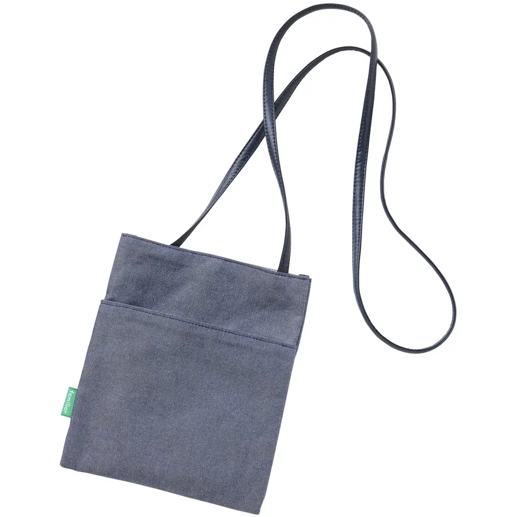 | サコッシュ | 13,200円(税込)/たて約20cm×よこ約17cm、肩紐全長約125cm/綿100%、皮革部分 合成皮革、パイピング ポリエステル100%/外ポケット・スナップボタン付き |