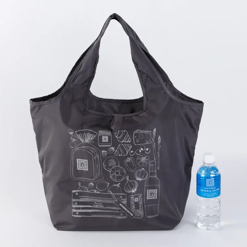 また、付属のゴムバンドでコンパクトにまとめられる携帯性が大きな特長です。軽量ながら見た目以上の収納力があり、まとめ買いや大きめの食材の持ち運びにも耐える容量を備えています。日常使いはもちろん、旅行時のサブバッグとしても有用です。