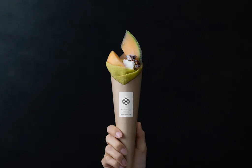 | メロンとりんごのクレープ | 通年(冬は再登場) | 980円 | 生地は米粉100%でもちもち、メロン果肉、自家製メロンとナッツのフロランタン、りんごのキャラメリゼ、カスタード、生クリーム等を包む |