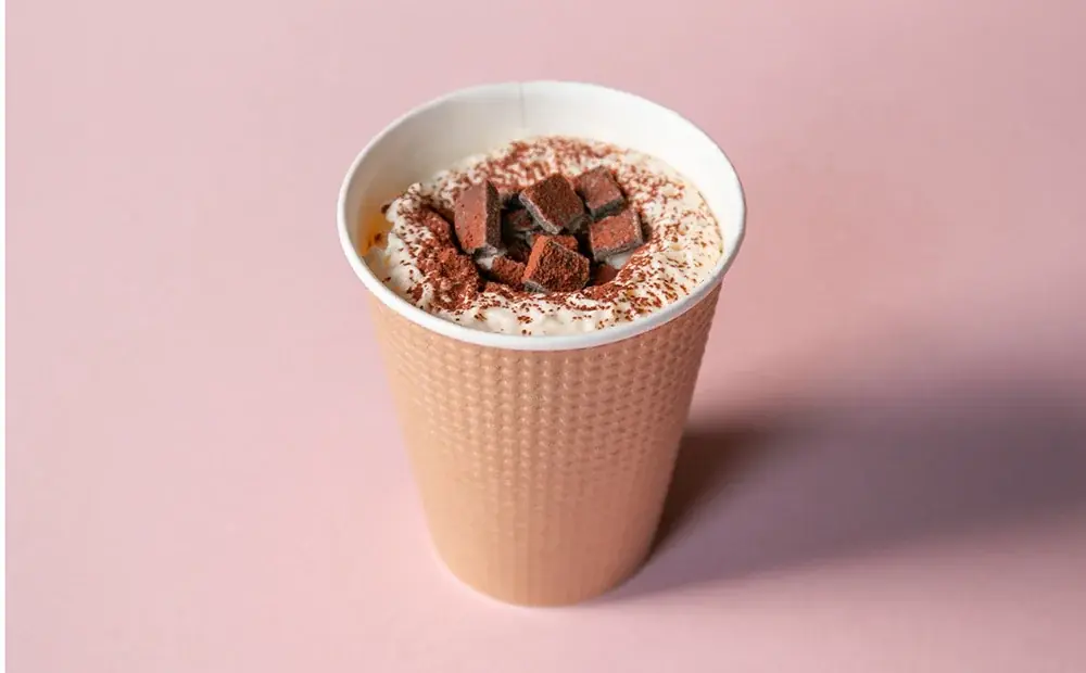 説明:寒い季節に適したホットチョコレートドリンク。温かい飲料として体を温める機能を果たすと同時に、カカオの風味をしっかりと感じられる一品です。