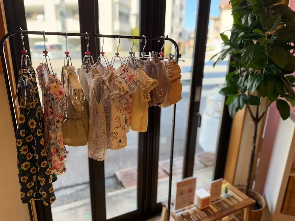 本プロジェクトの最大の特徴は、並べられる物品がオーナー自らの手でメンテナンスされる点です。回収された子供服やおもちゃは、KEIKOが洗濯・除菌・丁寧なアイロンがけを行い、カフェの雰囲気に合わせた見やすく楽しいディスプレイで提供されます。リサイクルショップのような無機質な陳列ではなく、手仕事による「再生」の価値を大切にしています。