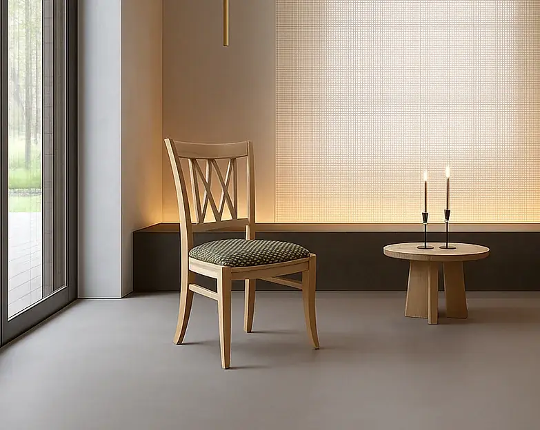 - 製品情報:ダイニングチェア(日本製/本体:カバ材、座面:布張り/約幅44×奥行52×高さ90・座面までの高さ43cm)