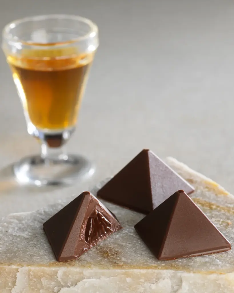 | 主な特徴 | 北海道産ぶどうの赤ワインを用いた赤ワインガナッシュ、赤ワイン漬けフルーツ | ラム香るガナッシュをダージリンティー風味のチョコで包む、口どけと風味の奥行き |