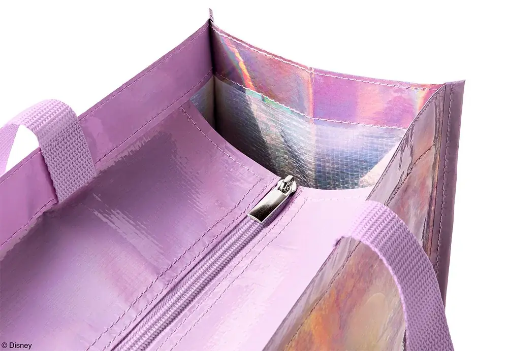 価格:990円(本体価格900円)。マチ付きで表裏異なるデザイン。ファスナー付きで日常使いや旅行にも対応できる仕様。