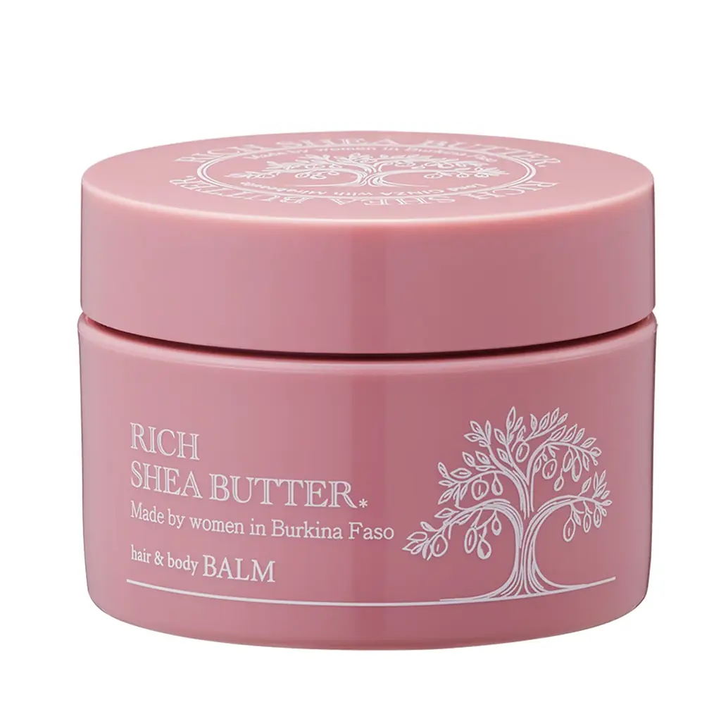 - ブルキナファソなどで生産された産地・製造過程が明確なシアバターを使用したヘアバーム。髪・手・ボディに使えるマルチユース。