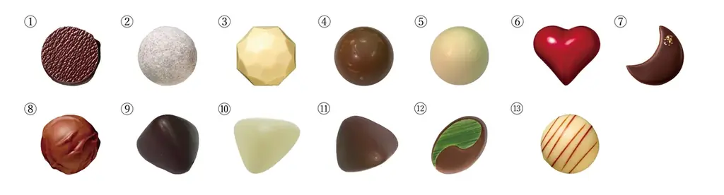 - ショコラ 10粒:販売期間 2026年1月21日〜2月14日、価格 4,080円(税込)。『ピスターシュ』『ゼリーグレープ』『ジャンドーヤ』『ポワール』『ティーハート』『SAKE』『グランマニエ』『メイプル』『ナッツホワイト』『ゼリーアップル』の10種入りで、多彩な味わいを一度に楽しめるセットです。
