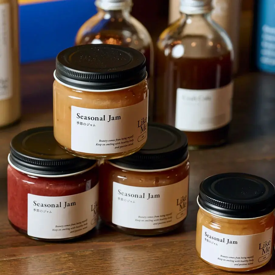 - りんごジャム・いちごジャム(小:600円/大:980円 税込) — 栃木県鹿沼市・渡辺りんご園の林檎とTOMO and BERRYのとちおとめの規格外品を使用し、栃木の自社ラボで手作りした数量限定の商品。