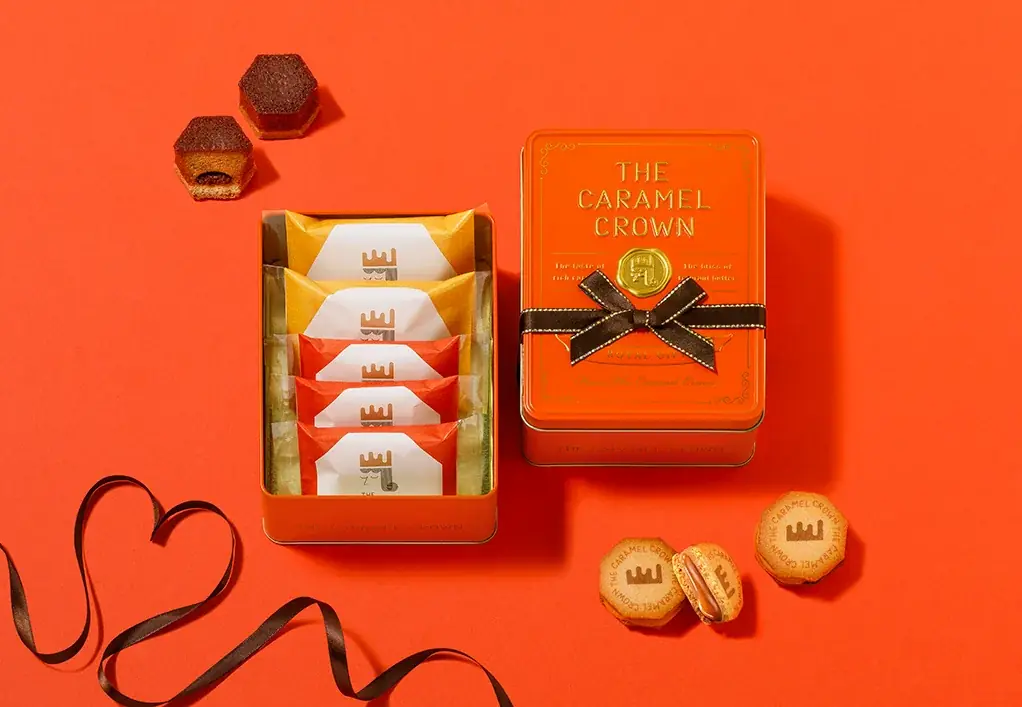 この限定アソート缶は、ブランドカラーのオレンジを基調にしつつチョコレート色のリボンをあしらった外観で、デザインテーマは「キャラメル王室からの贈り物」。封蝋印をイメージしたゴールドのロゴマークやエンボス加工の手触りにもこだわった仕様となっています。商品はなくなり次第終了とされているため、期間中でも早期販売終了の可能性があります。
