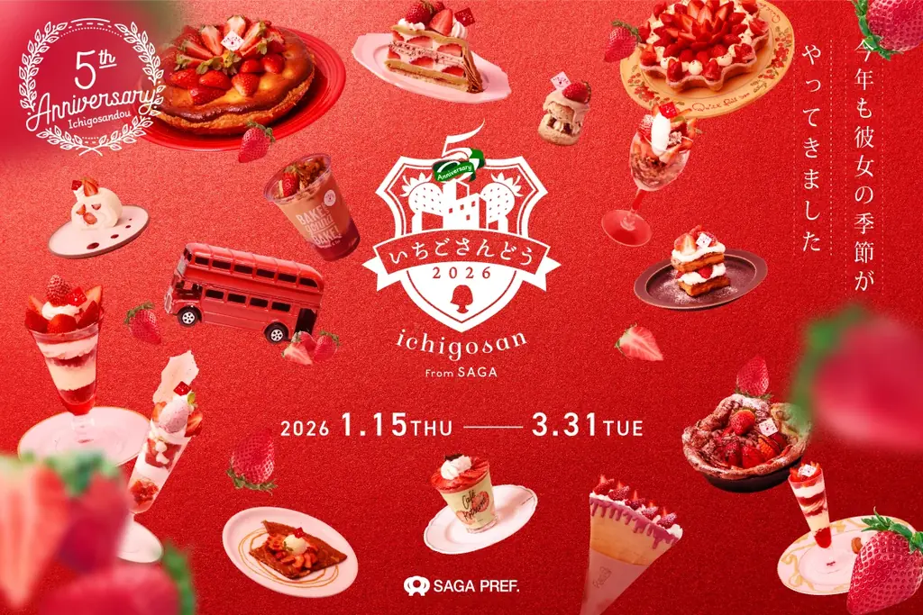 佐賀県によるプレスリリース(発表日:2026年1月7日 13時00分)によれば、今回の「いちごさんどう2026」は5周年の節目にあたり、過去最多となる12店舗の参加、合計17品のスイーツ・ドリンクが提供されます。公式サイトへの案内もあり、詳細は「いちごさんどう 2026」公式サイトで確認できます(https://www.saga-ichigosan.jp/ichigosandou/)。