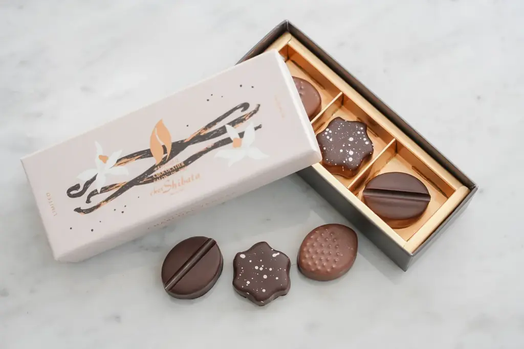 - チャコールバニラ:マダガスカル産天然バニラを備長炭でグリルし、香り付けと粉砕を行って使用。香ばしいバニラのアロマが特徴のショコラです。「レモン」や「チェンマイコーヒー」と組み合わせた3種のフレーバーで楽しめます。価格:1,620円(税込)