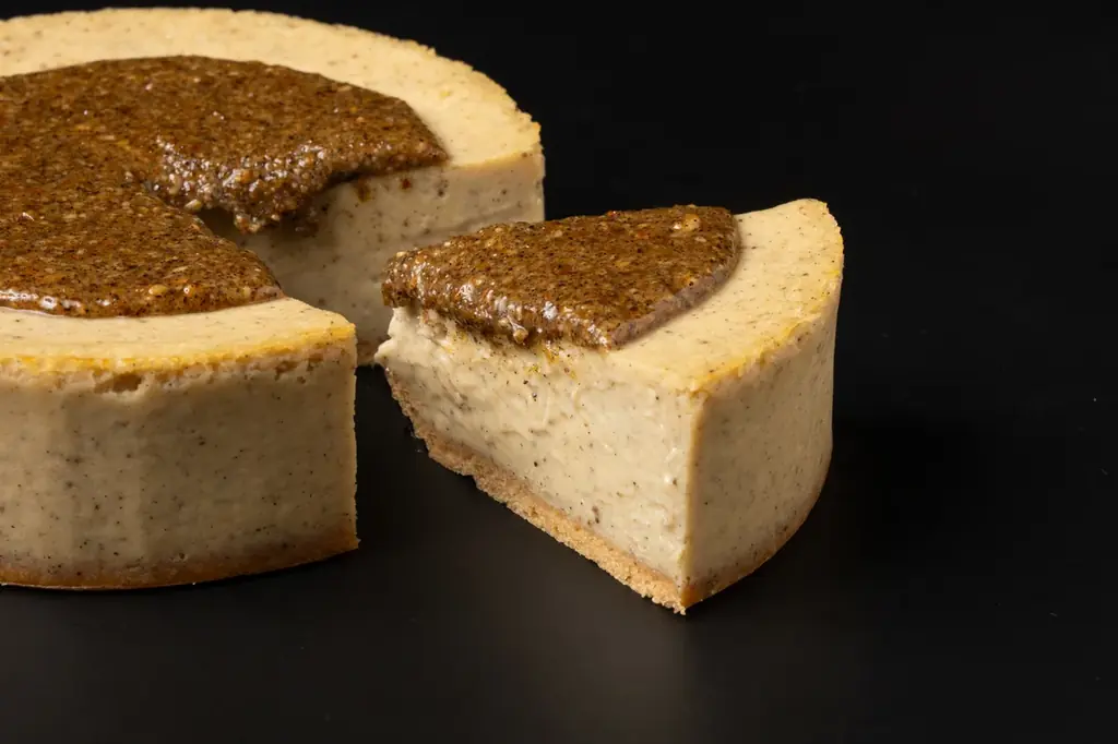 - クレイジーバニラ:滑らかなチーズアパレイユにバニラを丸ごと粉砕した自家製バニラパウダーをふんだんに使用。トップには塩味の効いた自家製アーモンドプラリネを絞り、アクセントを加えた一品。価格:3,100円(税込)