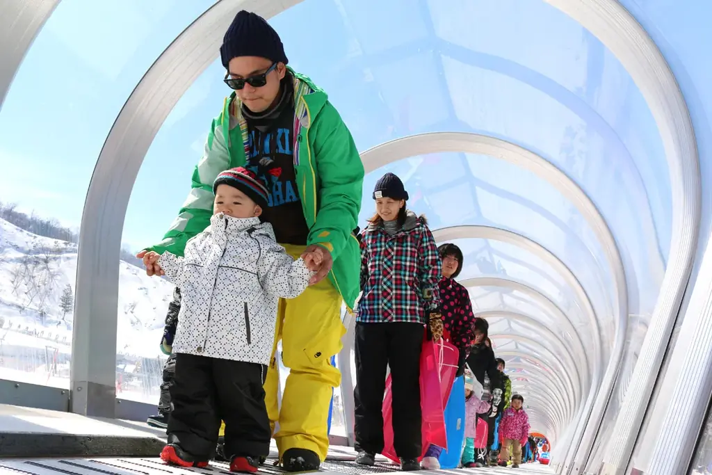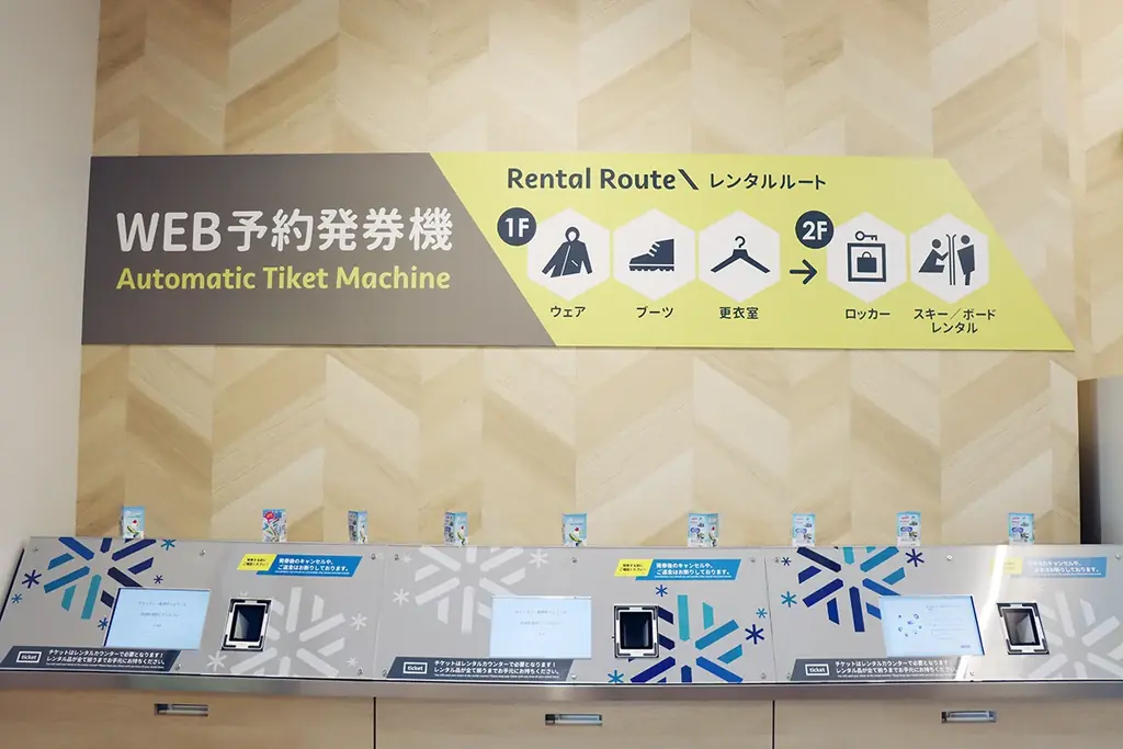 リフトチケットは自動券売機2台(クレジット対応専用)を新設し、「アジア初導入」とされる自動改札システム(SKI DATA社製)との連携により、スムーズな入場を実現しています。また、キッズパークには日本初導入のトンネル付き動く歩道を完備し、小さな利用者の利便性向上にも配慮しています。