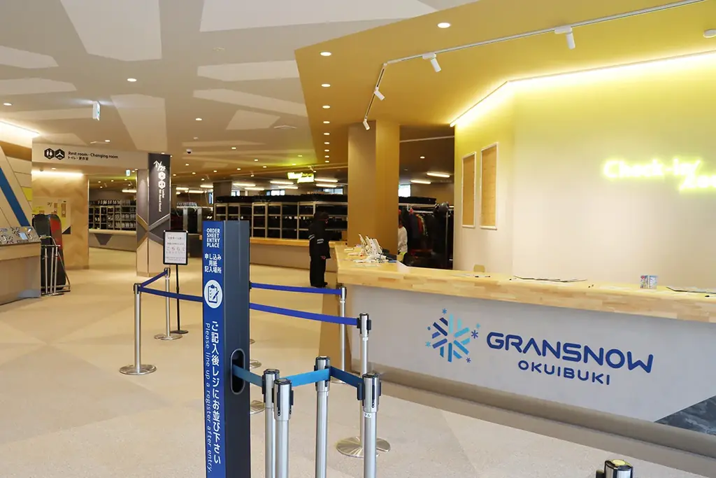 今シーズン、グランスノー奥伊吹はレンタル施設の大規模リニューアルを実施し、総額9億8,000万円を投じてグランドオープンしました。既存施設から面積を2.5倍に拡張し、レンタルセット総数は日本最大級の5,000セットに達しました。