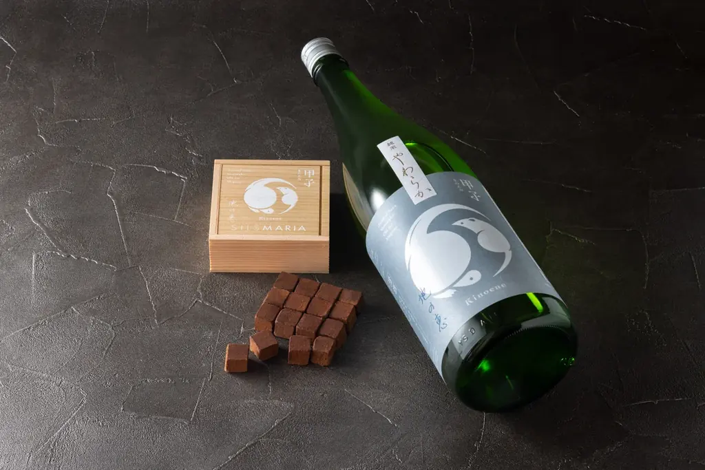 原材料・由来:千葉県酒々井町の老舗蔵元「飯沼本家」が手がける契約栽培の五百万石と地下水を用いた純米酒『甲子 純米 やわらか地の恵』を使用。米と米麹のみで仕込まれた純米酒の、まろやかな口当たりとしっかりとしたコクを生チョコレートで表現しています。