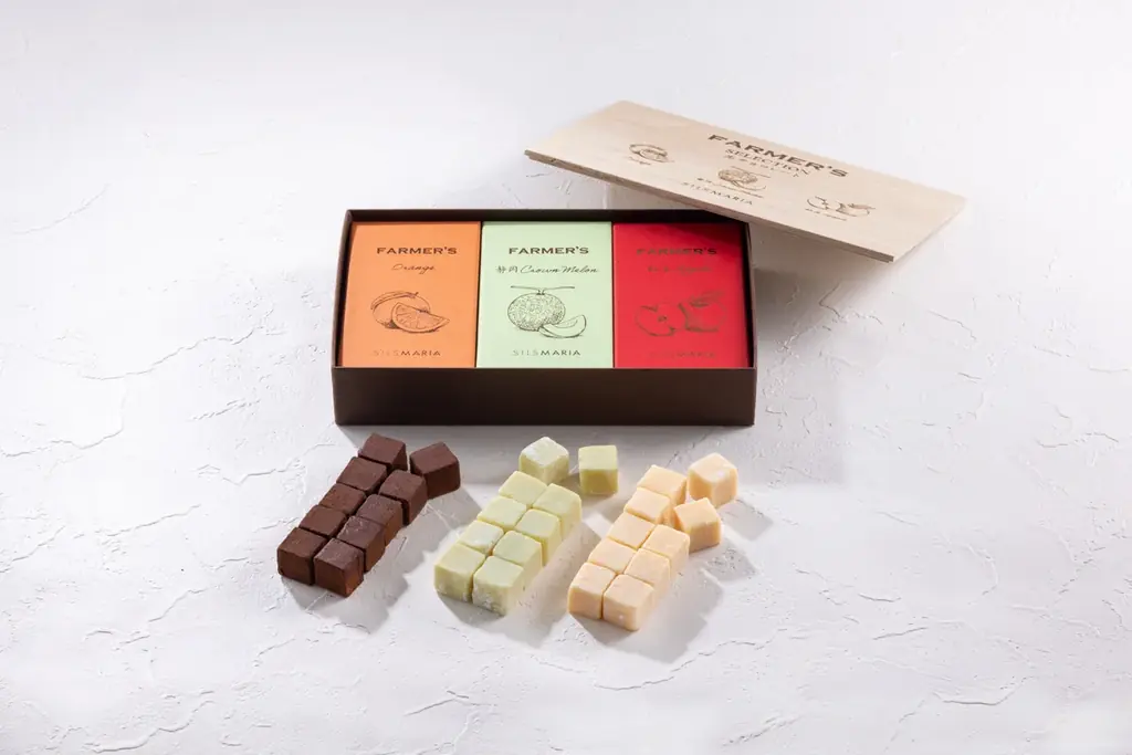 | FARMER’S SELECTION ‐ HARVEST ‐(静岡クラウンメロン・紅玉りんご・オランジェ) | 5,400円 | 30粒(10粒×3種) | 静岡クラウンメロン、国産紅玉りんご、オランジェ | 2026年1月15日より順次、直営店舗・バレンタイン催事・オンライン(商品により取扱店舗が異なる) |
