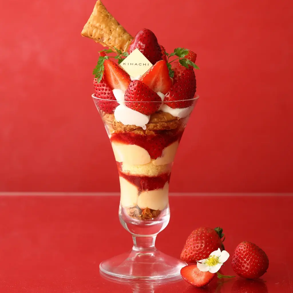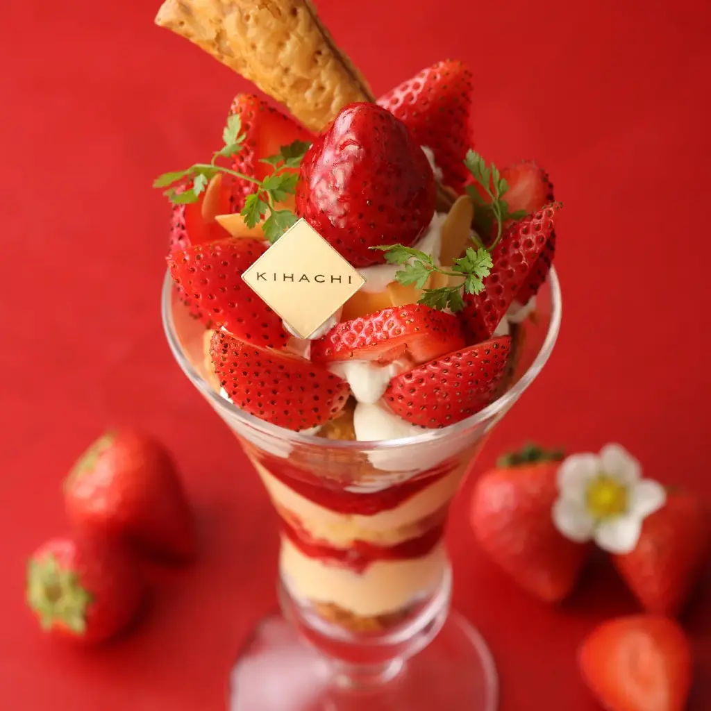 | 苺のパフェ | 1,870円 | 1月15日(木)~3月16日(月) | キハチ カフェ アトレ浦和、東急百貨店たまプラーザ店、福岡三越、セントシティ、福屋八丁堀本店、名鉄百貨店本店 | 名鉄百貨店本店は1月15日~2月28日までの販売 |