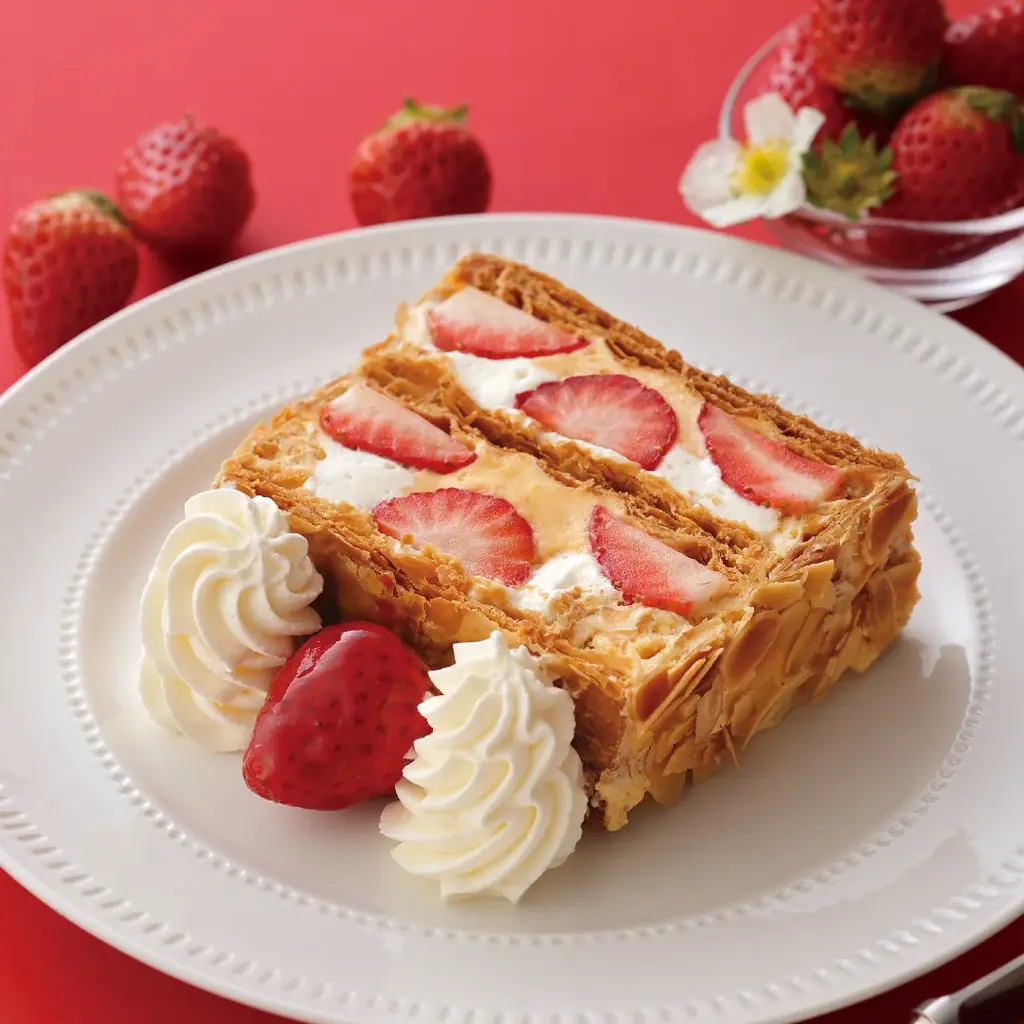 新作のほかにも、苺を多層に重ねたパフェや定番のナポレオンパイをはじめ、季節に合わせたメニュー構成で展開されます。各商品の販売期間・価格・販売店舗を正確に提示し、店舗ごとの限定販売や数量限定の設定についても明記されています。