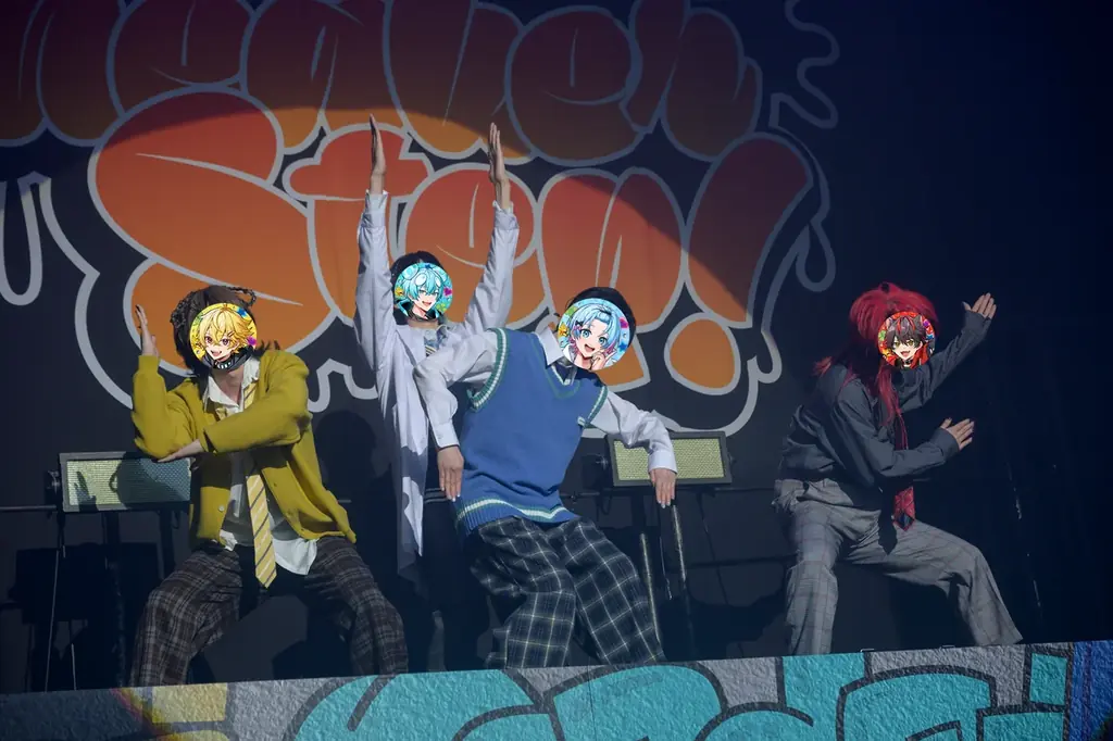 メインステージは2段構成で、ストリート感を意識したグラフィティ風のメンバー名やツアーロゴ、大型のフラッグがバックスクリーンを彩っていた。SEが流れるとメンバーカラーを身にまとった7人が次々と登場し、デビュー曲「SneakerStep」からライブは勢いよく進行した。