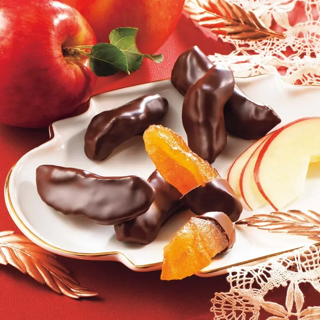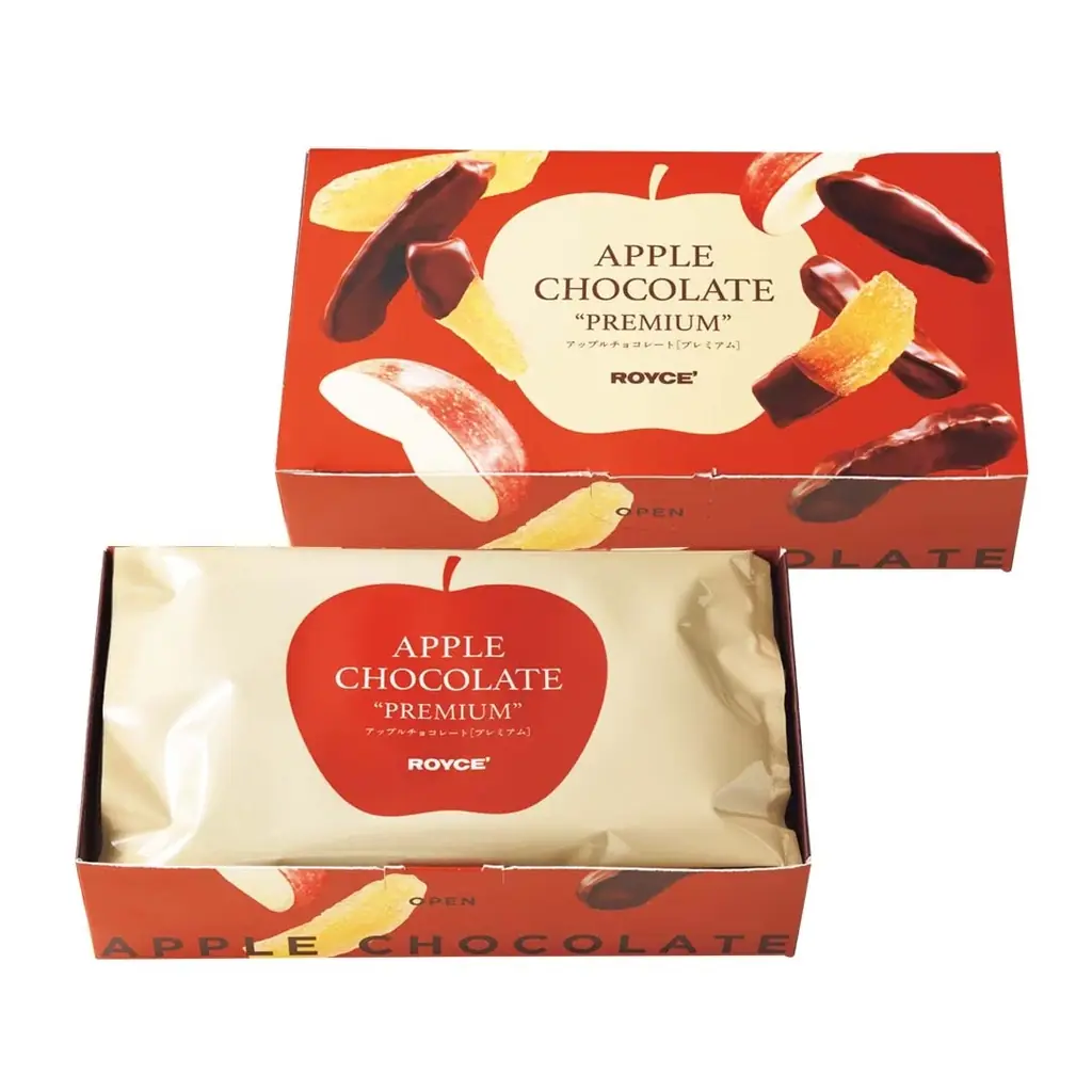 国産の糖漬けりんごを厳選して用い、甘さ控えめのチョコレートでコーティングした商品です。食べた際にはアップルブランデーの香りがふんわり広がり、りんごの食感とチョコレートのカカオの香りが調和する“プレミアム”な味わいを目指しています。