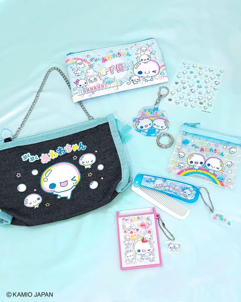 『ぷくぷくあわわちゃん』は、泡から生まれたおとこのこという設定で、和ませる表情や独特の世界観が特徴です。本コレクションでは、そのファンシーな雰囲気を平成のステーショナリー文化と掛け合わせ、当時の記憶を呼び起こすアイテム群を展開します。デザイン面では“お札風デザイン”やポップで遊び心のある柄など、見ているだけで当時の空気感を想起させる仕上がりです。
