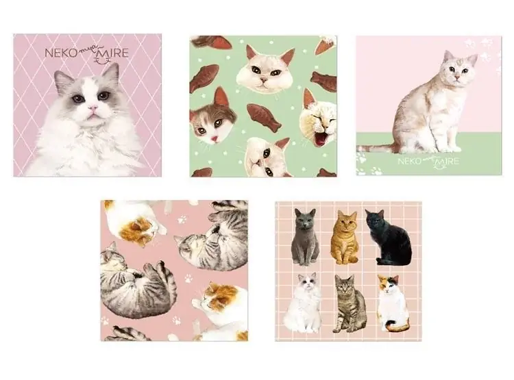 これらの雑貨は、文具としての実用性を保ちながらもコレクション性の高いデザインで、贈答用の小物や日常のアクセントとして位置づけられる。各アイテムには「ねこみゃみれ」特有の猫のモチーフや肉球、丸まる猫のイラストなどが使われている。