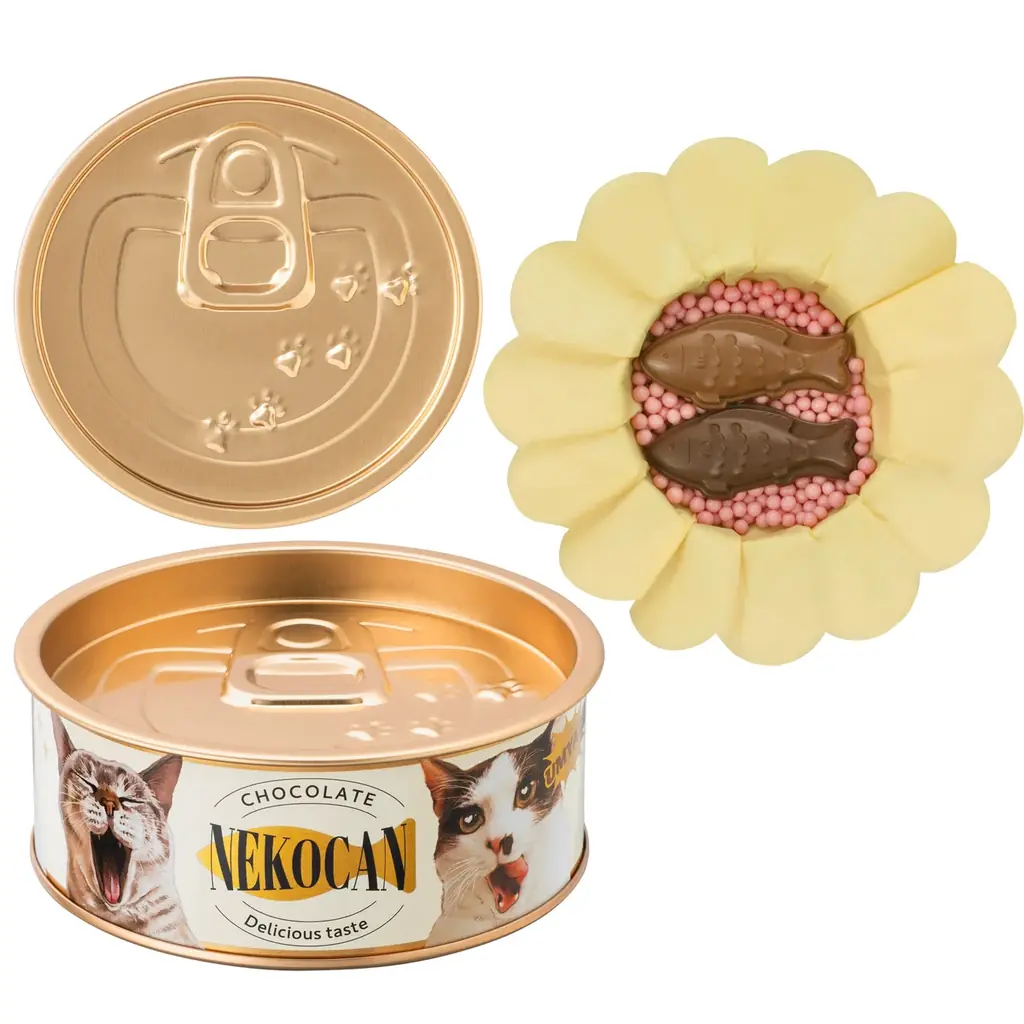 - 918円。魚型チョコレートを詰めた遊び心のある猫モチーフの缶。