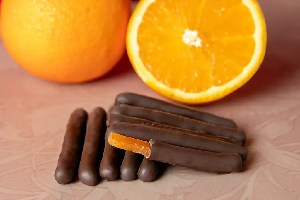 | オランジェット | 1,801円 | シロップ漬けオレンジピールにチョコを被せた伝統的なショコラ菓子。ほろ苦さが特徴。 |