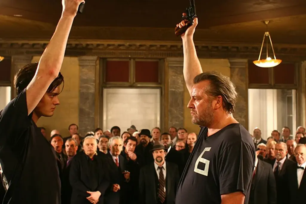 解説:一発の銃弾で人生が決まる“集団ロシアンルーレット”に挑む男たちの攻防を描くサスペンス。